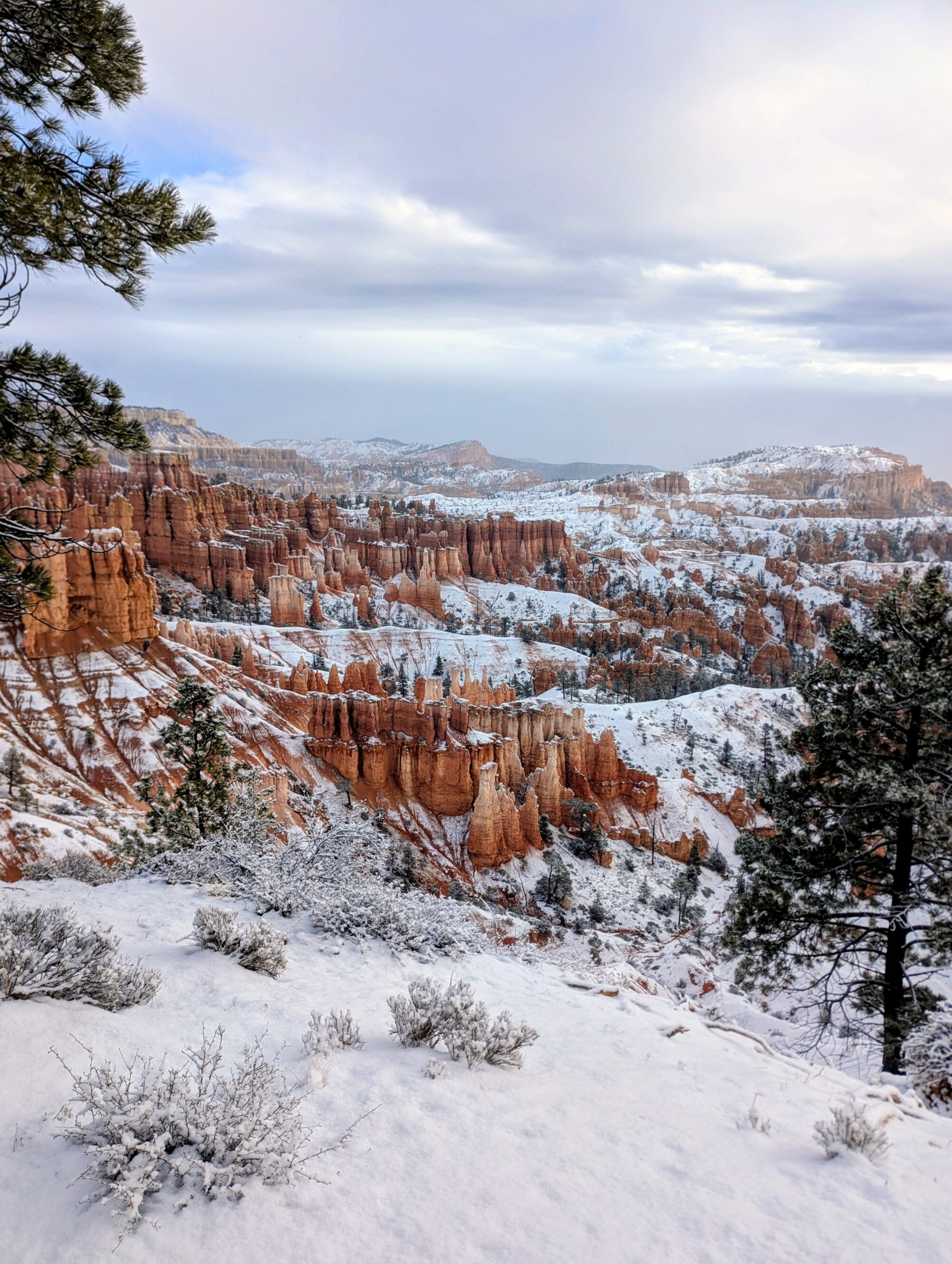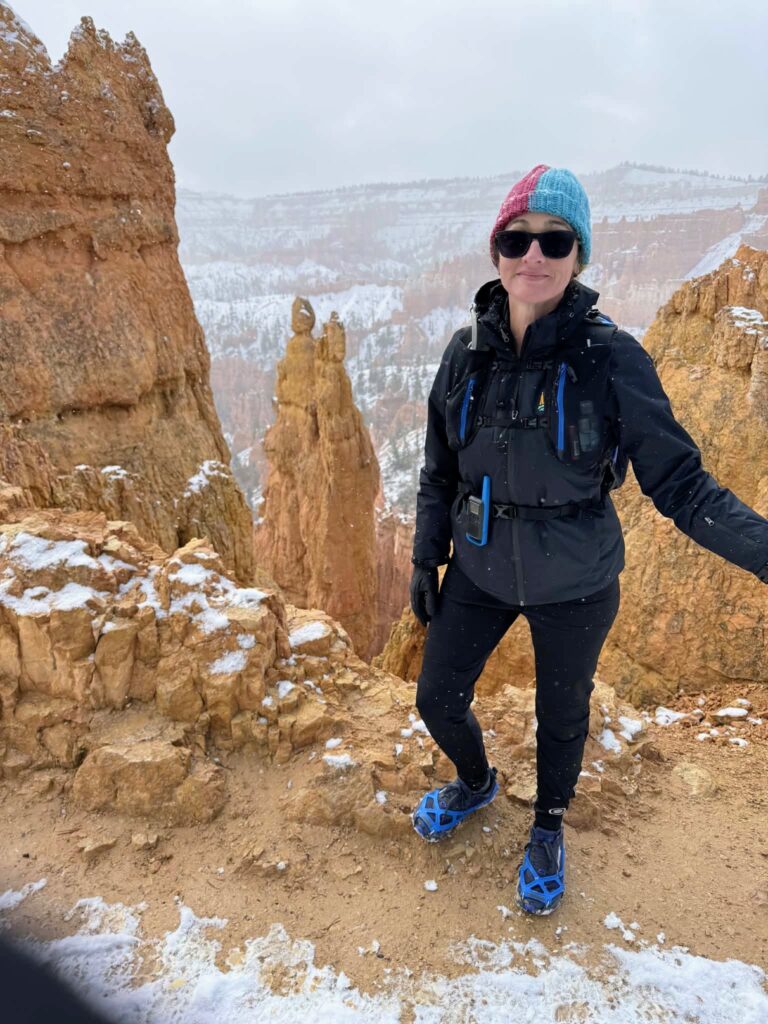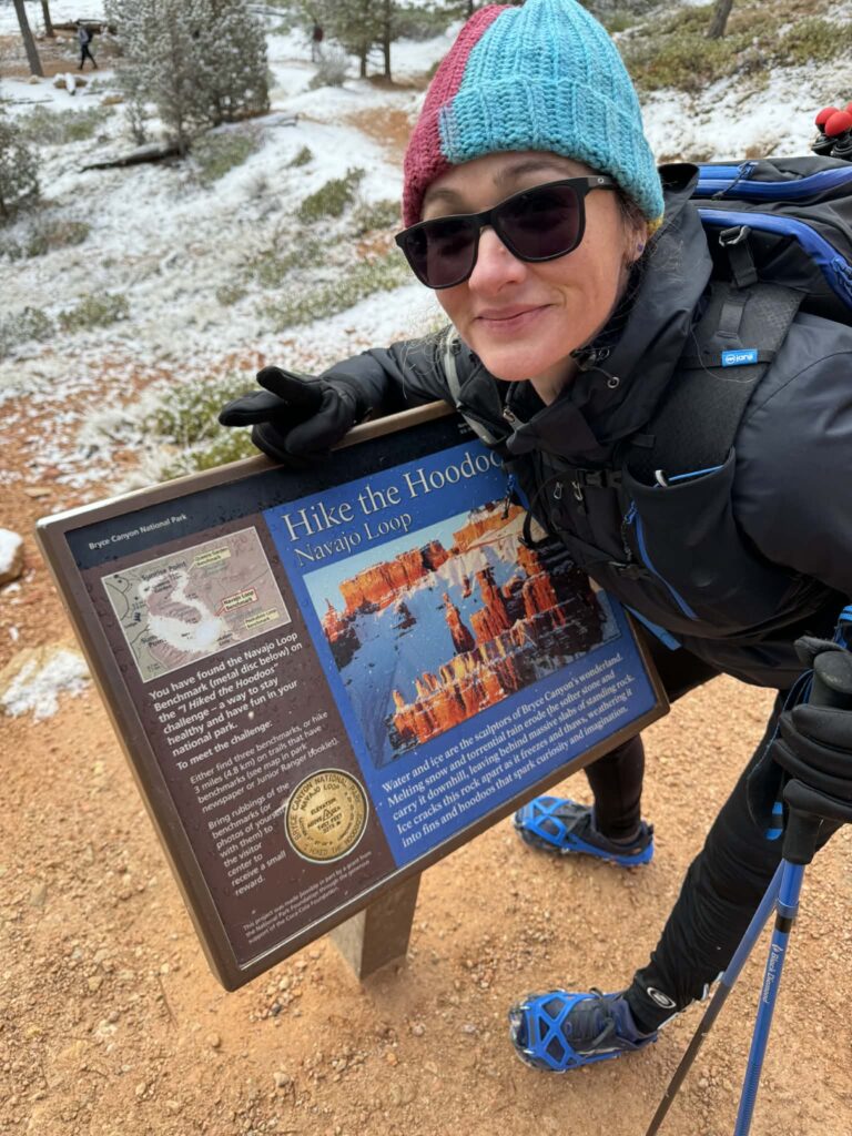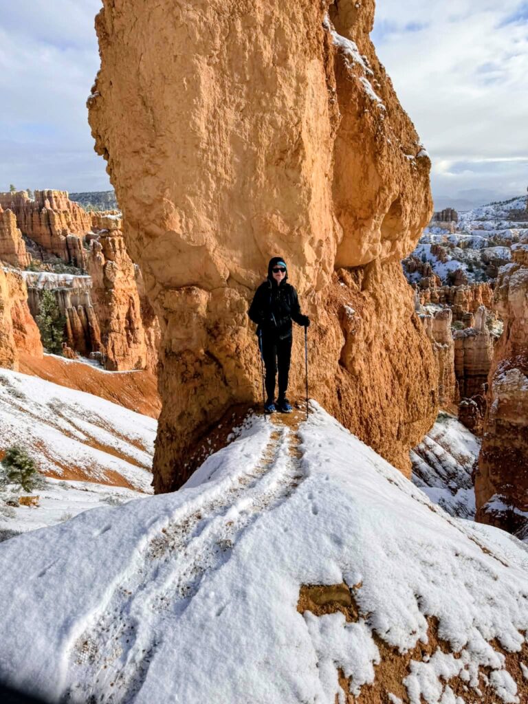 The park does not salt their roads for environmental reasons. People were pulled over in the middle of the road scared to move, putting chains on their tires, etc. Revel Rose handled it all great, but I was still scared of other vehicles. We did the recommended Queens Garden Navajo Loop and it did not disappoint. Beautiful views and hoodoos.