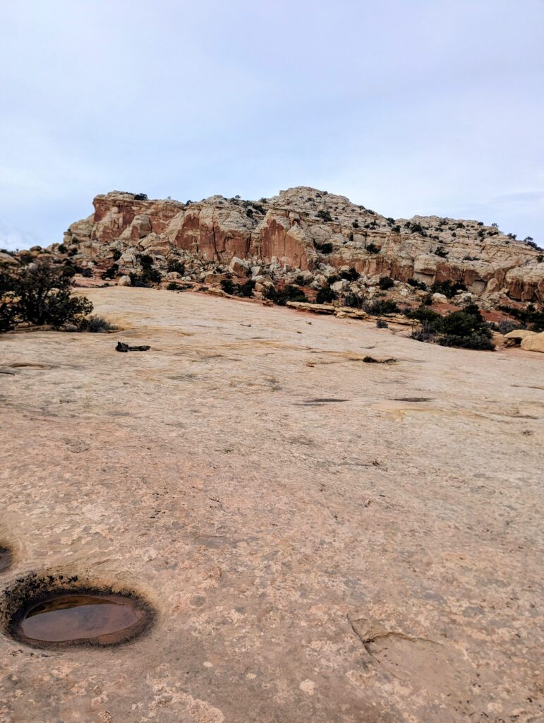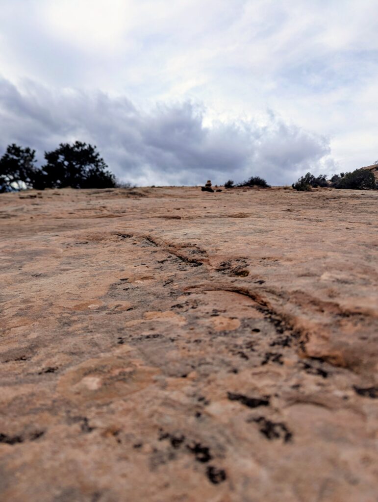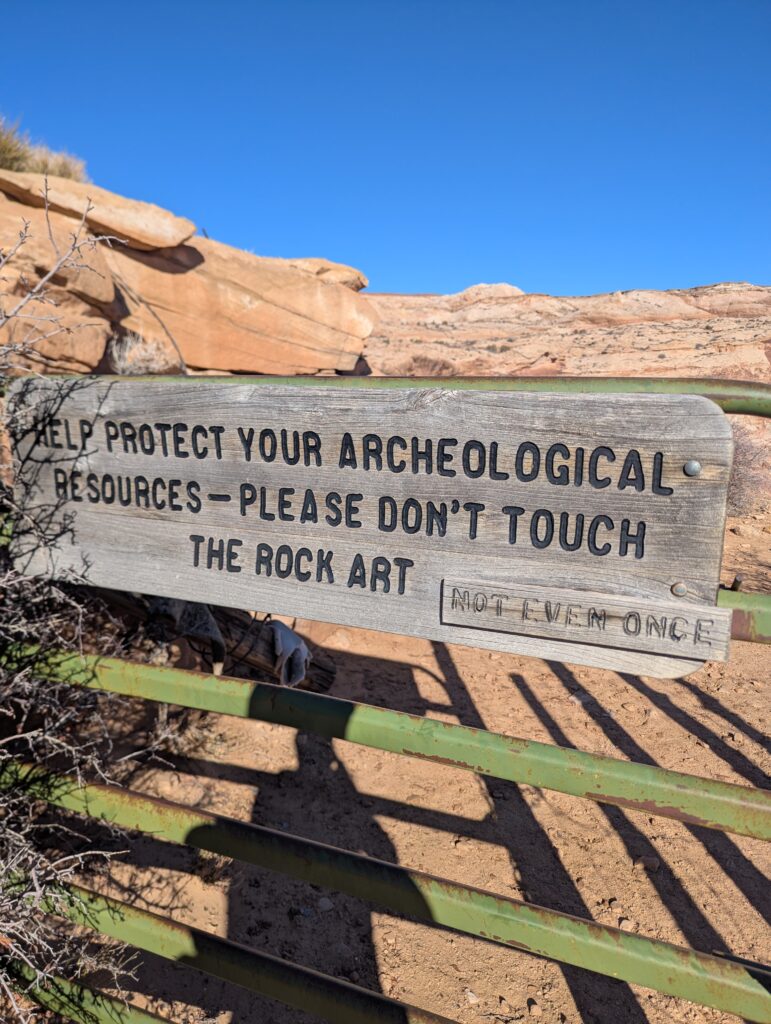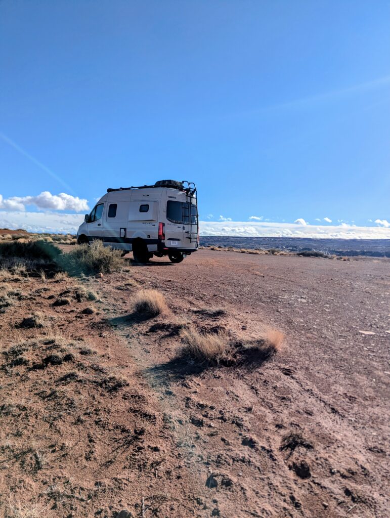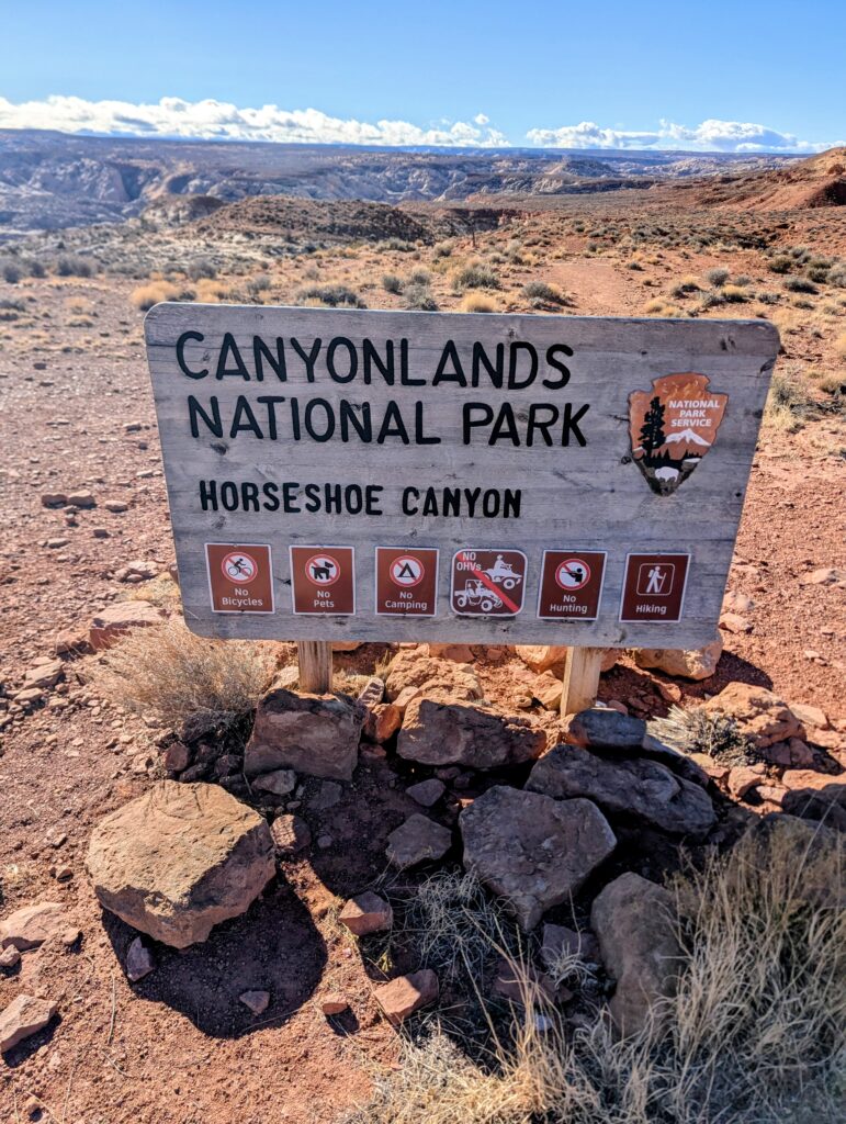 Thoroughly exhausted after backpacking, we planned to get showers at the gas station north of Moab, but with it being Christmas Eve, it was already closed by the time we got there. Instead we had our first ever Love’s Truck Stop shower. It was not bad at all and I would totally do it again. The cashier could guess we were there for showers when we walked in and was super nice. After that we drove to the trailhead for Horseshoe Canyon, which is technically in the western section of the park, but it is separated from it. The surrounding land is BLM land so we could take advantage of free camping and also the vault toilet at the trailhead. We saw on iOverlander that people camp in the area, but no one was there on this Christmas Eve.