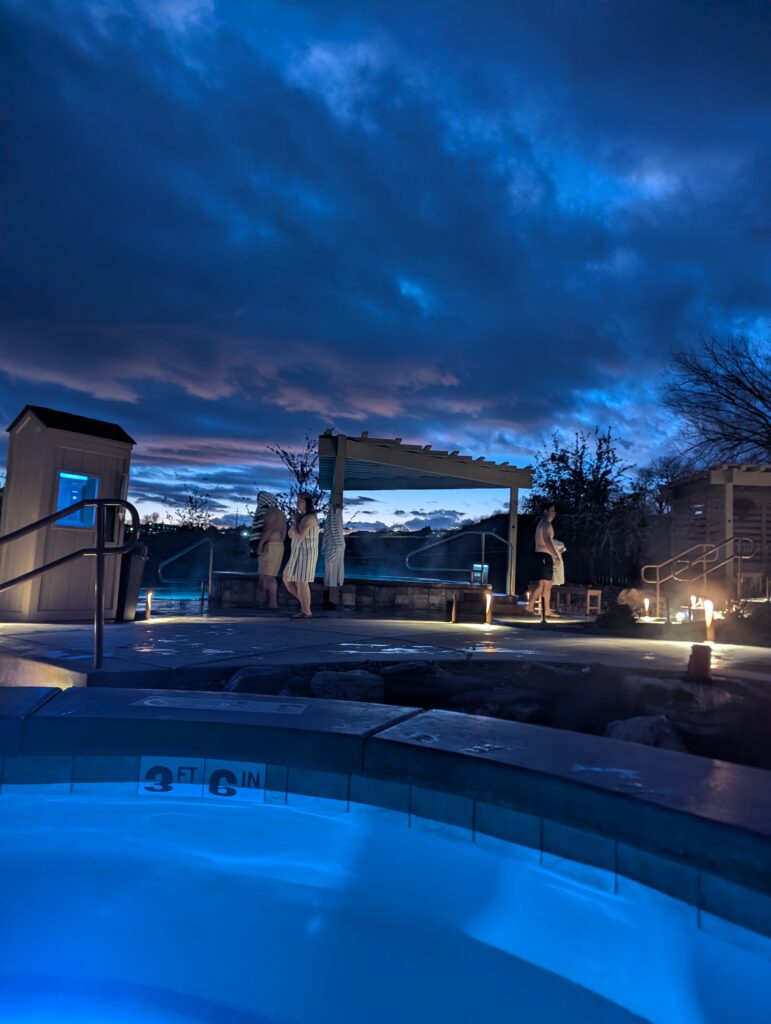 Our next stop was Zion Canyon Hot Springs where we got the four hour pass for the 21+ pools. There was a bar in this section and just generally quieter and more chill. There were tubs inspired by different countries and the temperature and mineral content was set to what is naturally occurring is that country. There were also pools with real rock bottoms, various temperatures, and named after local features.