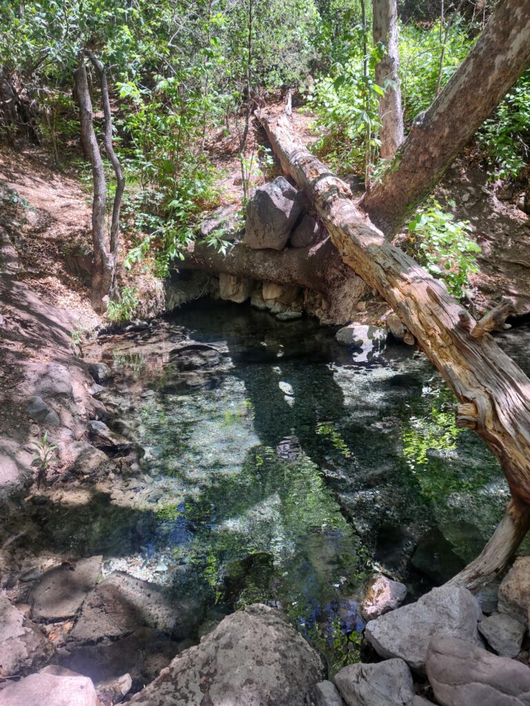With the day unfolding, I embarked on a quick hike on the Middle Fork Trail, conveniently located near the dorm building. That night I had the luxury of stretching out in a bed for the first time in a while, a comforting reprieve. The next morning, a solitary hike from the TJ Corral trailhead to Jordan Springs treated me to breathtaking scenery and the rare pleasure of solitude in the wilderness. A pleasure I would find not so rare for my remaining time in the Gila. With the lack of people in the wilderness, I enjoyed a private soak in the spring.