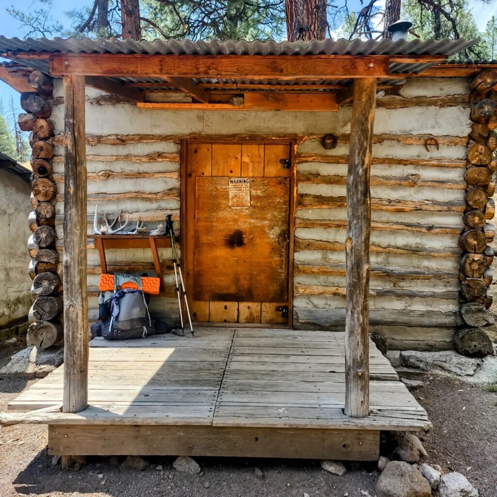 After the climb, it was easy walking and navigation for the rest of the day. But a plan to explore off-trail water sources was thwarted by an unexpected thunderstorm, leading to an impromptu refuge on the porch of an old, locked cabin. Monsoon season was here.