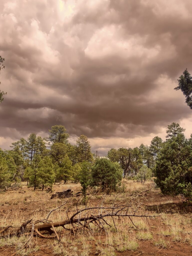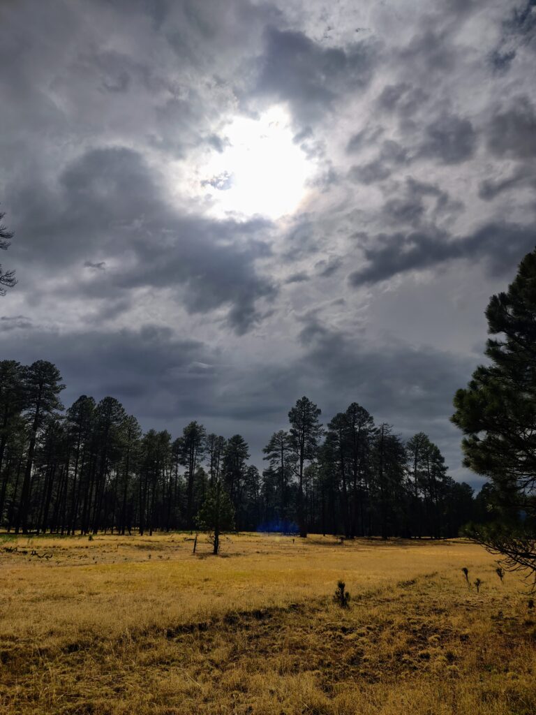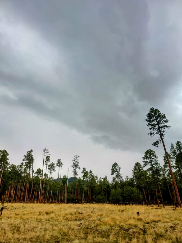 The trail was hard to keep as it went in and out of the dry creek bed, but it was also hard to get lost since it followed the creek bed. Sometimes I gave up and just walked in the dry creek bed. After a bit, small pools of clear, flowing water started to appear. I was so excited that I was going to be able to report back about the water situation here, as it was unsure if there would be water. The water pooled and made little waterfalls along the creek, it was beautiful! I filled up my water in these beautiful flowing pools, but I did not stay to play in them because I would be near Granite Peak again and really wanted to summit it this time. The skies had been pretty dark but by the time I reached the turn for the peak, it seemed to have cleared up a bit and I had not heard thunder for about 30 minutes. After a quick snack, I stashed my backpack near the trailhead and packed essentials in my fanny pack.As I clipped on my fanny pack to head out, thunder! Nooo!! But it was only a 1.2-mile trail and this was my second attempt, so I decided to still try. I could always turn around. I had been hiking on the edge of a thunderstorm for most of the trip so far anyway. But this was a peak and I would be leaving my shelter behind, so it’s different, I know. As I started up and rounded my first corner, the whole sky was ominous. I had only gone about 1/3 of a mile and even though I desperately wanted to bag that peak, I knew the smart thing to do was turn around so I did.