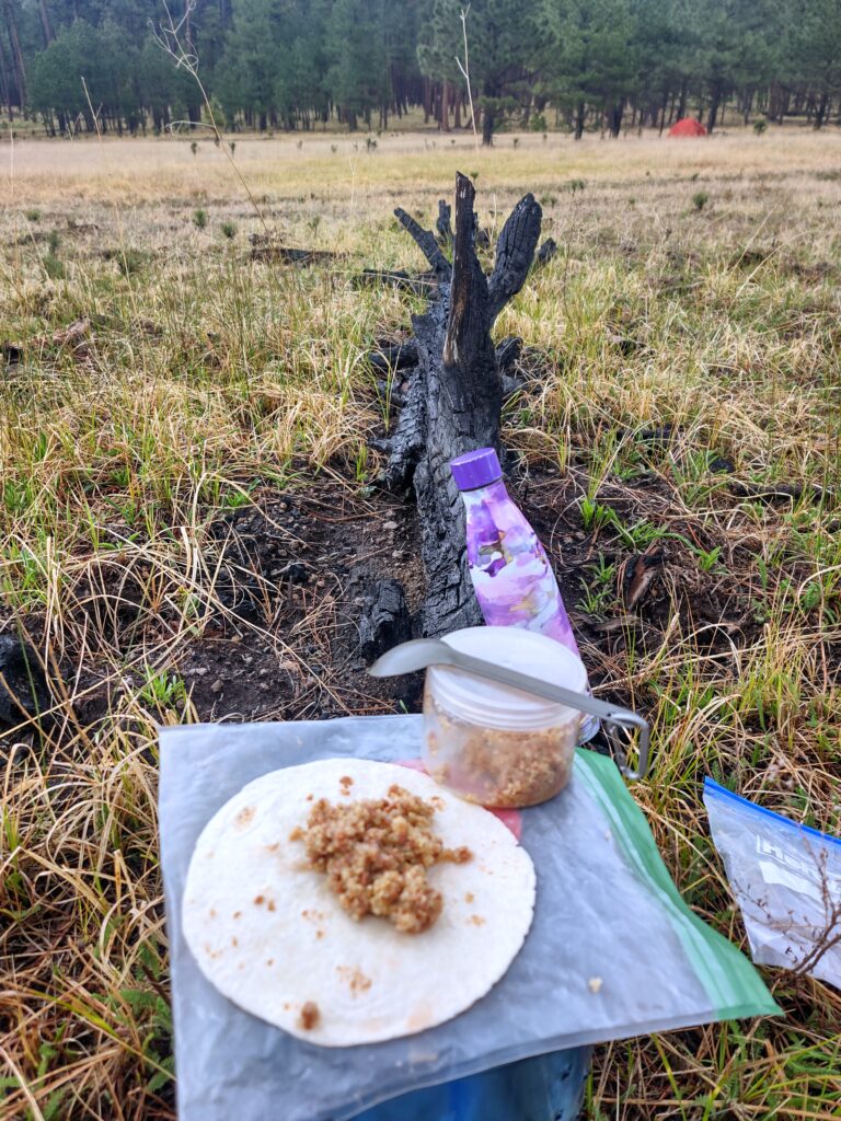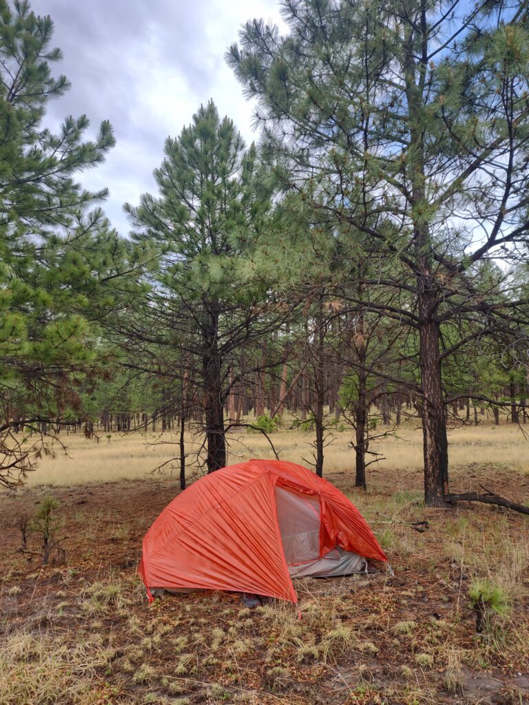 Due to my practice run the night before, I was able to throw camp up in like 30 seconds. I had a beautiful camp and the weather stayed calm enough for me to have a quick meal away from the tent and stash my canister. I knew this was a wildlife hotspot and I wanted to be safe and not have food smells near my bed for the night.
