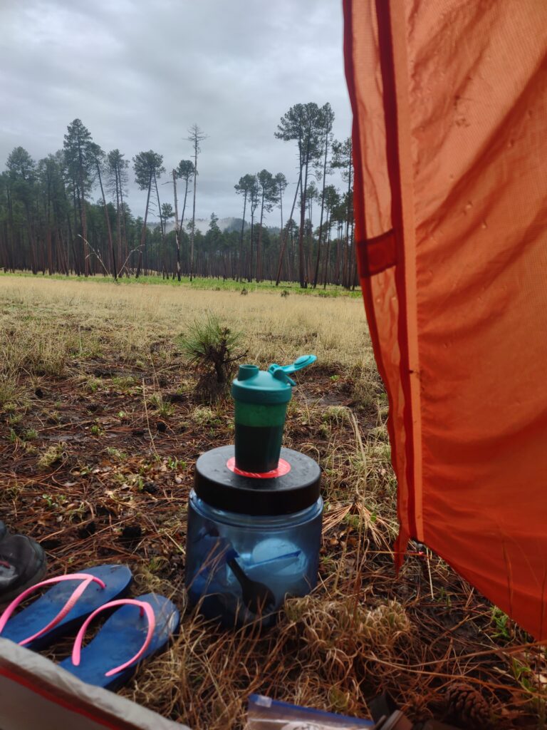The day finally turned sunny at camp, and I explored the area. There was a huge pool with red-ish multi-colored sitting water. There was also a small spring with murky and still water. I drank the spring water but also dropped some chemicals in it after filtering it. Even though I believe you always need to drop chemicals in it to guarantee you won’t get sick, I usually felt safe just filtering the water out there.