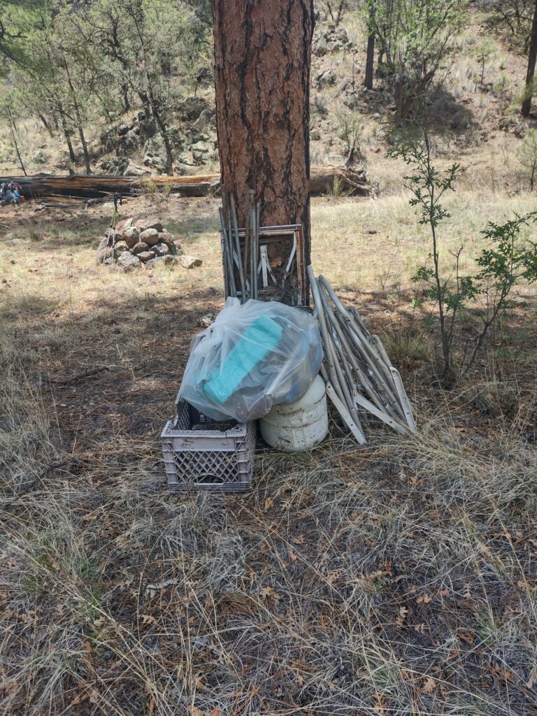 I was on the lookout for trash. There had been reports of trash in the area, so I was prepared to bag up a lot of trash and most likely send coordinates so someone could come out with horses and pick it up. And boy did I find some trash! There was a propane tank, three broken lawn chairs, a window or small door of some sort, multiple plastic bins, and a slew of random trash. How did people get all this out here?!?