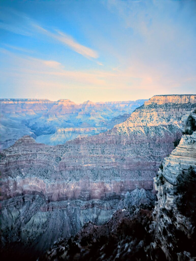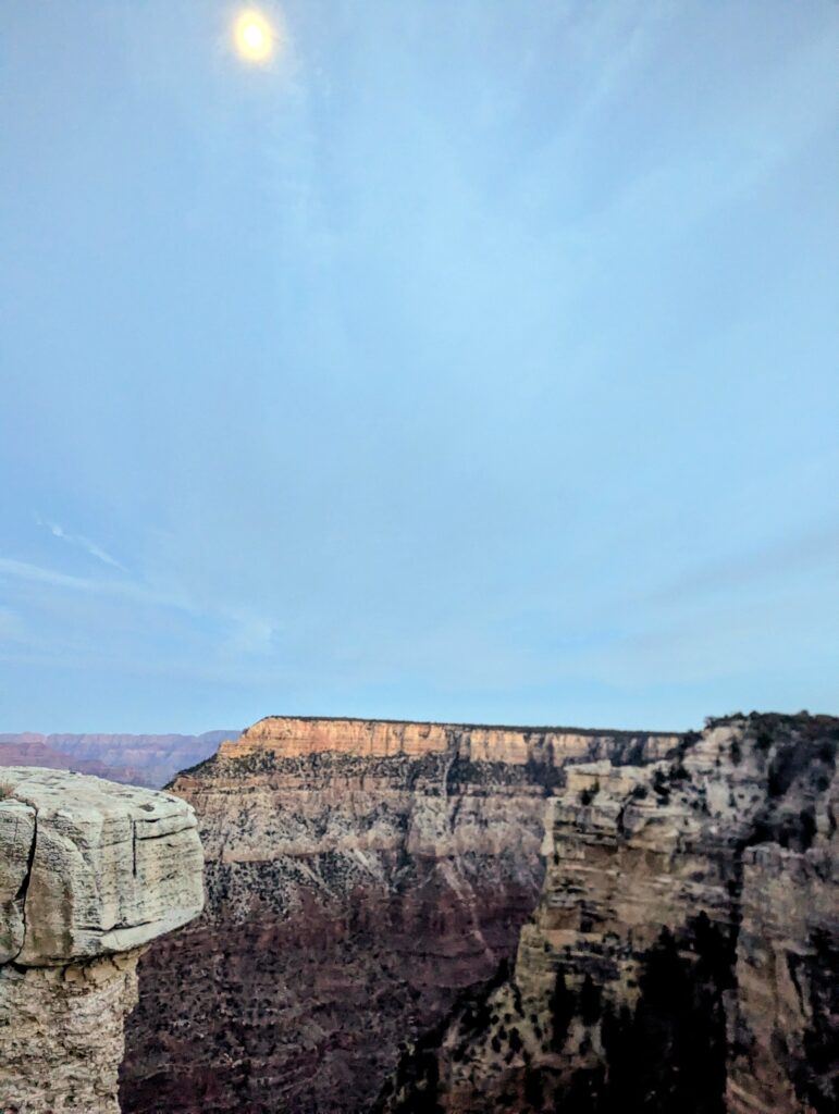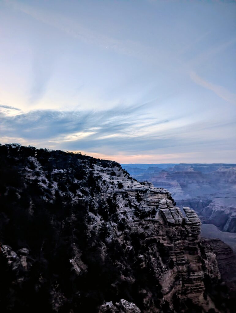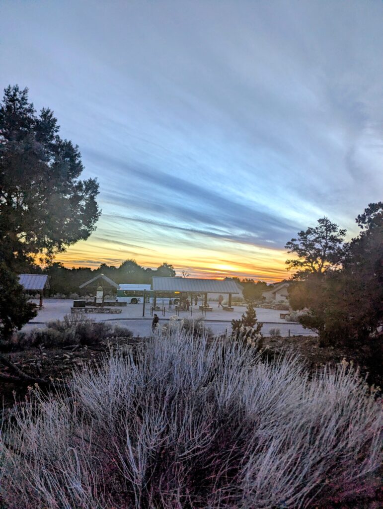 Leftover pizza and an early bedtime was our only agenda for the night, so we could catch the sunrise over the canyon rim. However, the rim was cold the next morning and I quickly gave up on the sunrise after snapping a couple of pictures.