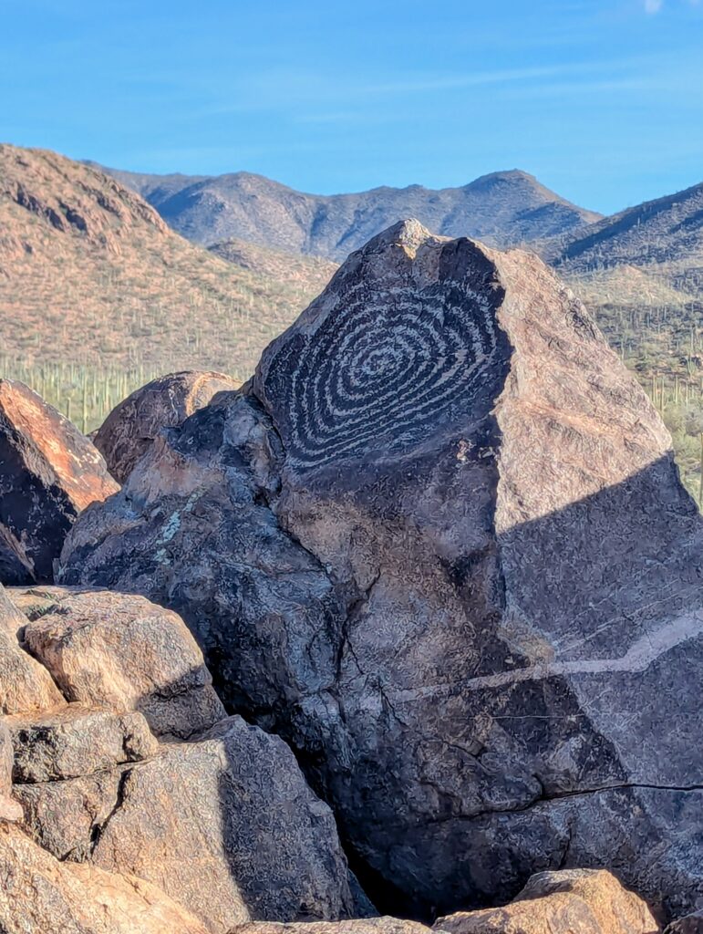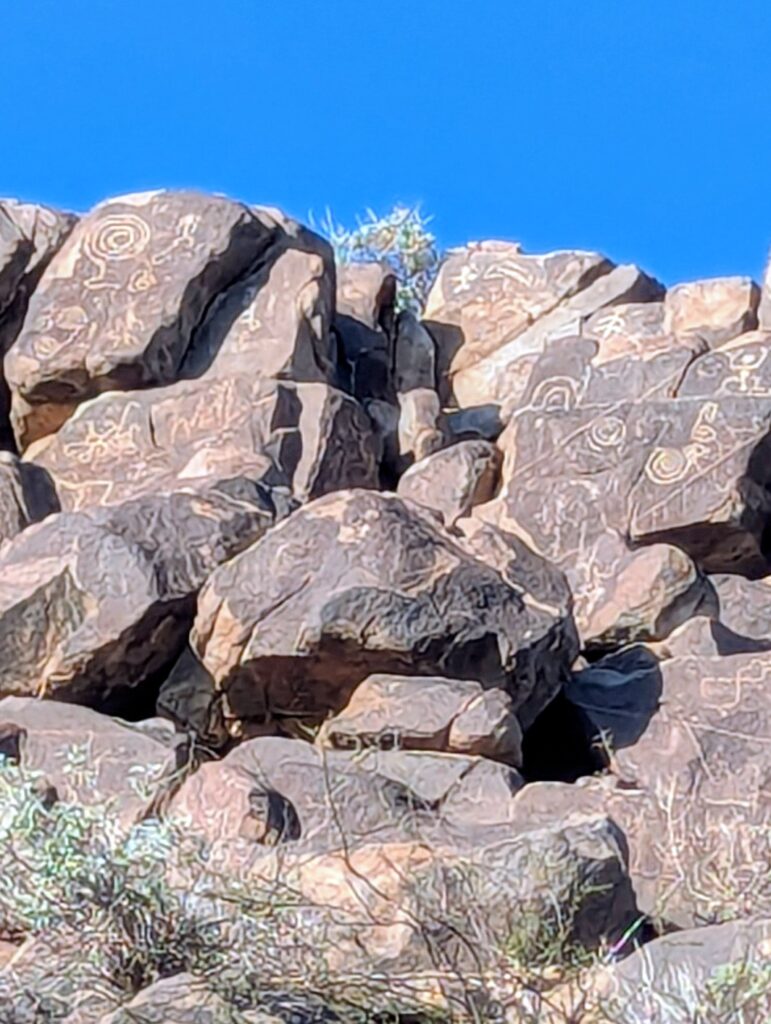 My parking spot happened to be at the Signal Hill Trailhead so I decided to check that out too. The Signal Hill Trail is the premier, easy-to-access location for viewing ancient Hohokam petroglyphs. This short, well-maintained trail leads to a rocky hill covered in hundreds of petroglyphs, including stick figures and geometric shapes.