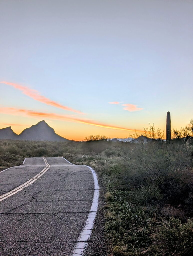 By the time I left the Tucson area, something had shifted. I had navigated questionable camps, full trailheads, early-morning gate openings, and changing plans without hesitation. I climbed Wasson Peak on my own timeline, rode desert roads until I was satisfied, and followed the Arizona Trail simply because it was there. The miles were quieter now, but they were no less full. I felt at home alone on the road again.