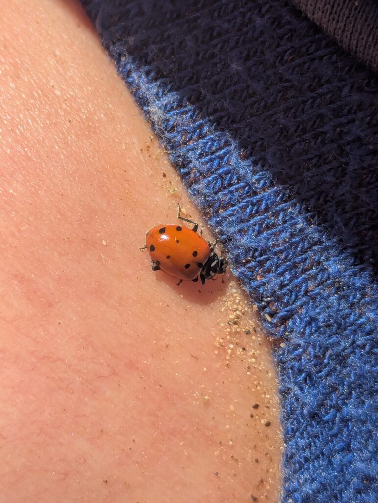 The trail started out pretty quiet, but as I got closer to the peak and junctions that came to the peak from different directions, there were quite a few people out bagging Wasson that day. There were a couple of groups at the top so I grabbed a quick picture and picked a rock on my way down to take a break and enjoy the views. I had a buddy join me on the rock. I felt a tickle on my ankle and look down to find a ladybug. Something both me and my sister-in-law find when we know our buddy is with us.